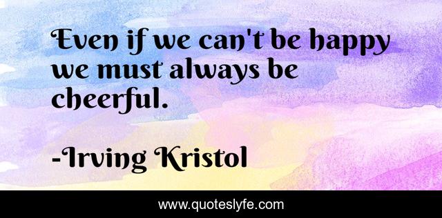 This page presents the quote "Even if we can't be happy we must always be cheerful.". Author of this quote is Irving Kristol. .