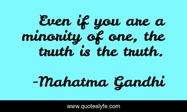 This page presents the quote "Even if you are a minority of one, the truth is the truth.". Author of this quote is Mahatma Gandhi. This quote is about truth is, minority,.