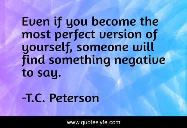 This page presents the quote "Even if you become the most perfect version of yourself, someone will find something negative to say.". Author of this quote is T.C. Peterson. This quote is about confidence, positive, motivational, optimistic, inspirational, enthusiasm,.