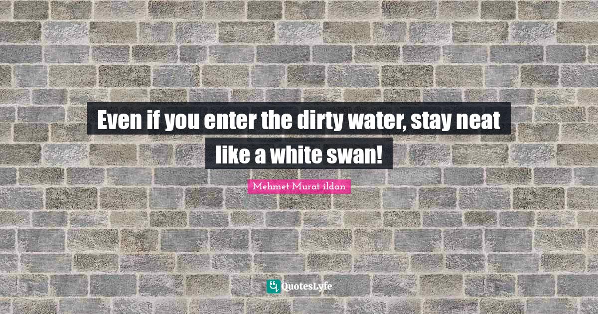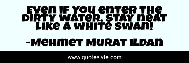 This page presents the quote "Even if you enter the dirty water, stay neat like a white swan!". Author of this quote is Mehmet Murat ildan. .