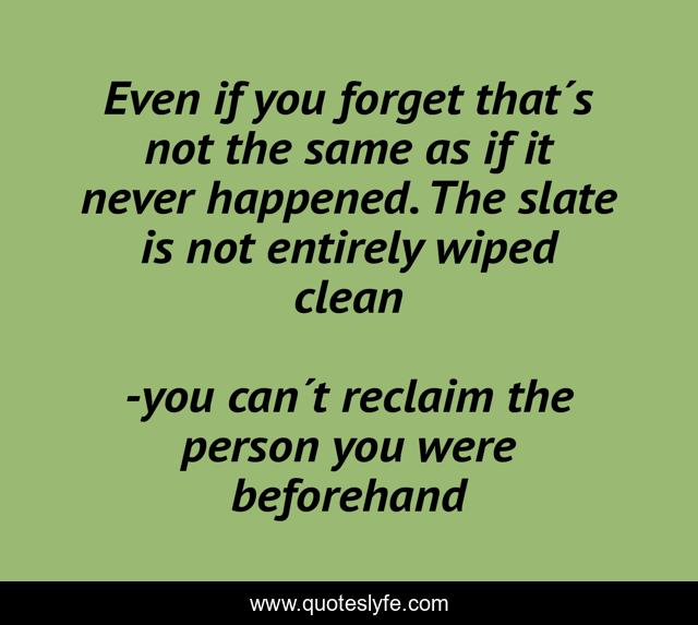 This page presents the quote "Even if you forget that´s not the same as if it never happened. The slate is not entirely wiped clean". Author of this quote is you can´t reclaim the person you were beforehand. .