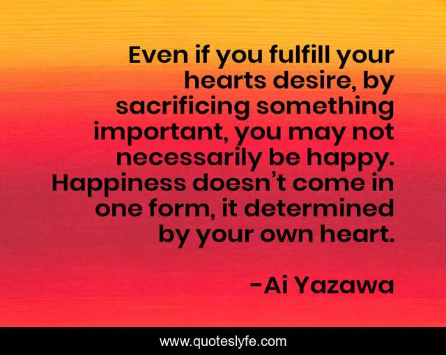 "Ai Yazawa Quotes." Quoteslyfe.com, 2025. Mon. 08 Dec. 2025. <https://www.quoteslyfe.com/quote/Even-if-you-fulfill-your-hearts-desire-93382>.