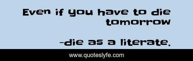 "die as a literate. Quotes." Quoteslyfe.com, 2025. Sun. 07 Dec. 2025. <https://www.quoteslyfe.com/quote/Even-if-you-have-to-die-tomorrow-250080>.
