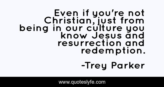This page presents the quote "Even if you're not Christian, just from being in our culture you know Jesus and resurrection and redemption.". Author of this quote is Trey Parker. This quote is about culture, christian,.