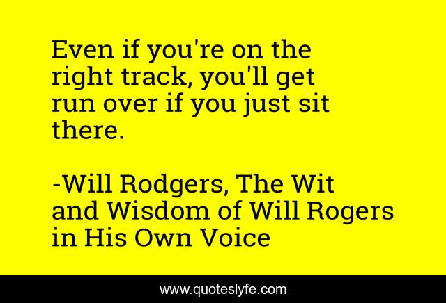 This page presents the quote "Even if you're on the right track, you'll get run over if you just sit there.". Author of this quote is Will Rodgers, The Wit and Wisdom of Will Rogers in His Own Voice. This quote is about goals, success,.