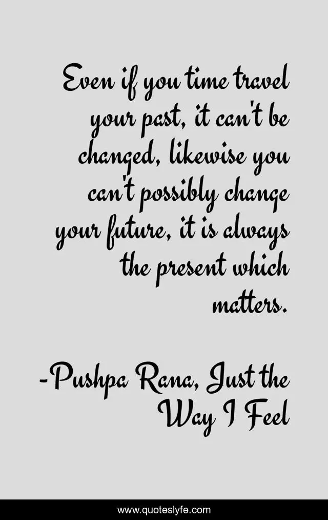 "Pushpa Rana, Just the Way I Feel Quotes." Quoteslyfe.com, 2025. Mon. 08 Dec. 2025. <https://www.quoteslyfe.com/quote/Even-if-you-time-travel-your-past-94272>.