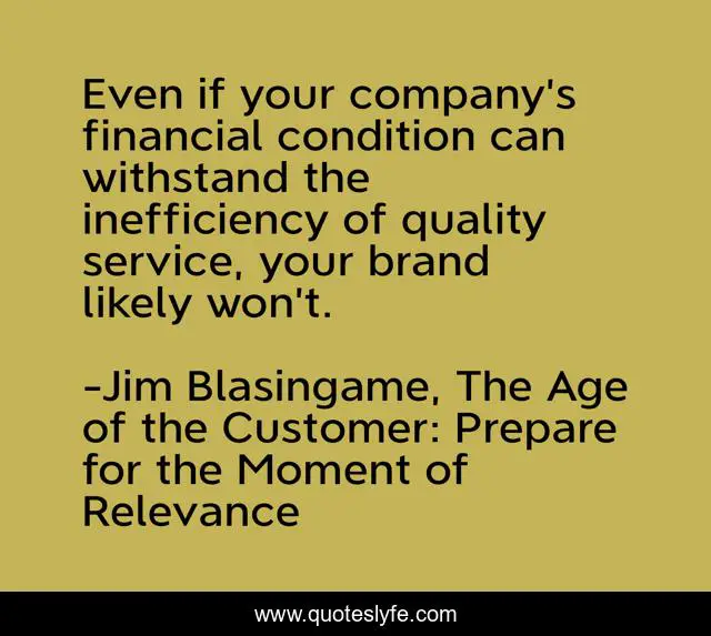 "Jim Blasingame, The Age of the Customer: Prepare for the Moment of Relevance Quotes." Quoteslyfe.com, 2025. Mon. 08 Dec. 2025. <https://www.quoteslyfe.com/quote/Even-if-your-company-s-financial-condition-128875>.