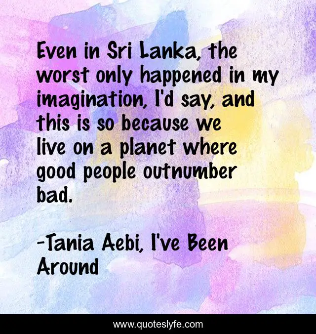 "Tania Aebi, I've Been Around Quotes." Quoteslyfe.com, 2025. Sun. 07 Dec. 2025. <https://www.quoteslyfe.com/quote/Even-in-Sri-Lanka-the-worst-only-125897>.