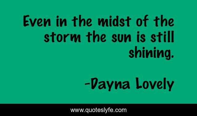This page presents the quote "Even in the midst of the storm the sun is still shining.". Author of this quote is Dayna Lovely. This quote is about life, learning-from-mistakes, sun, sunshine, storms, learning-process, learning, storm, storms-of-life,.