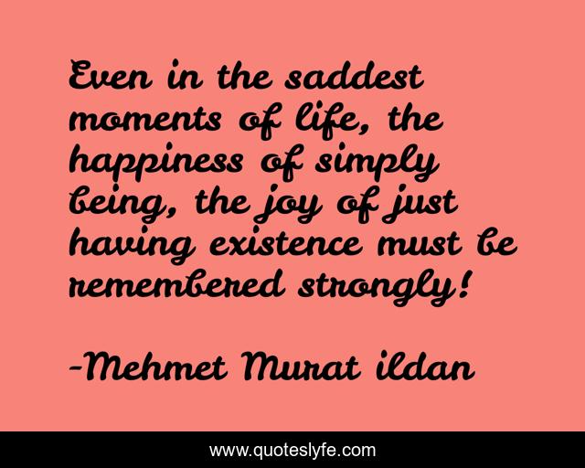 This page presents the quote "Even in the saddest moments of life, the happiness of simply being, the joy of just having existence must be remembered strongly!". Author of this quote is Mehmet Murat ildan. .