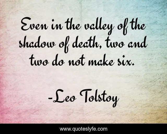 This page presents the quote "Even in the valley of the shadow of death, two and two do not make six.". Author of this quote is Leo Tolstoy. This quote is about shadow, six, two,.