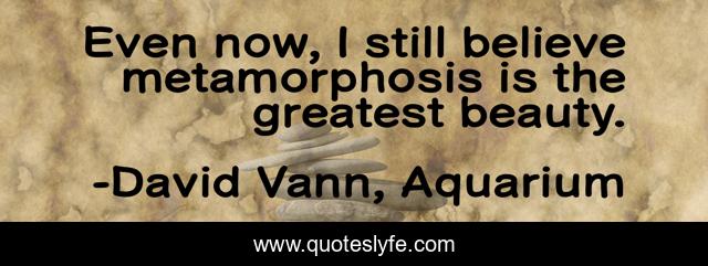 This page presents the quote "Even now, I still believe metamorphosis is the greatest beauty.". Author of this quote is David Vann, Aquarium. This quote is about metamorphosis, beauty,.