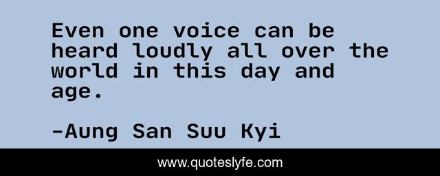 "Aung San Suu Kyi Quotes." Quoteslyfe.com, 2025. Mon. 08 Dec. 2025. <https://www.quoteslyfe.com/quote/Even-one-voice-can-be-heard-loudly-296616>.