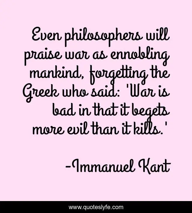 "Immanuel Kant Quotes." Quoteslyfe.com, 2025. Sat. 06 Dec. 2025. <https://www.quoteslyfe.com/quote/Even-philosophers-will-praise-war-as-ennobling-285578>.