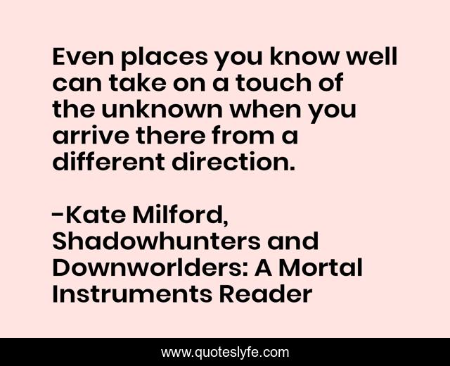 "Kate Milford, Shadowhunters and Downworlders: A Mortal Instruments Reader Quotes." Quoteslyfe.com, 2025. Sat. 06 Dec. 2025. <https://www.quoteslyfe.com/quote/Even-places-you-know-well-can-take-182730>.