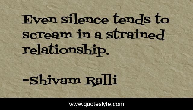 This page presents the quote "Even silence tends to scream in a strained relationship.". Author of this quote is Shivam Ralli. This quote is about relationship, silence, love-issues,.