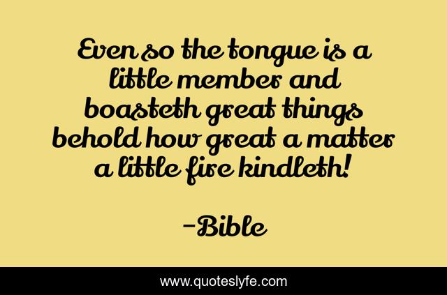 This page presents the quote "Even so the tongue is a little member and boasteth great things behold how great a matter a little fire kindleth!". Author of this quote is Bible. This quote is about speakers, speeches,.