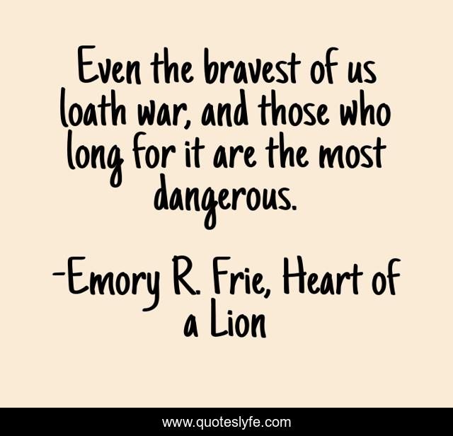 "Emory R. Frie, Heart of a Lion Quotes." Quoteslyfe.com, 2025. Sat. 06 Dec. 2025. <https://www.quoteslyfe.com/quote/Even-the-bravest-of-us-loath-war-202844>.