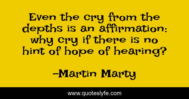 This page presents the quote "Even the cry from the depths is an affirmation: why cry if there is no hint of hope of hearing?". Author of this quote is Martin Marty. .