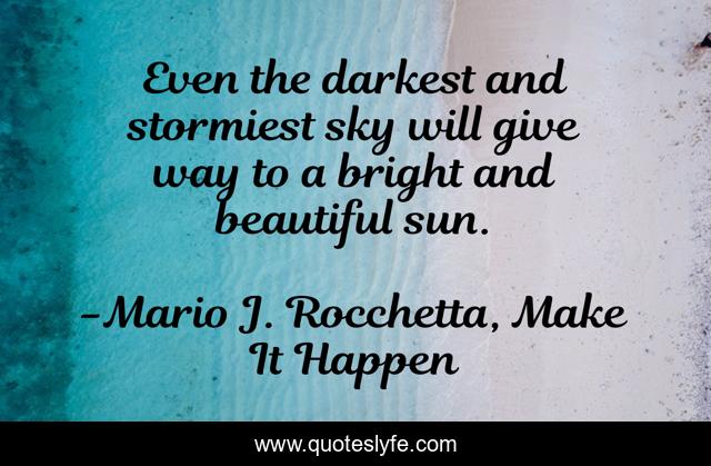 This page presents the quote "Even the darkest and stormiest sky will give way to a bright and beautiful sun.". Author of this quote is Mario J. Rocchetta, Make It Happen. This quote is about enthusiasm, inspirational,.