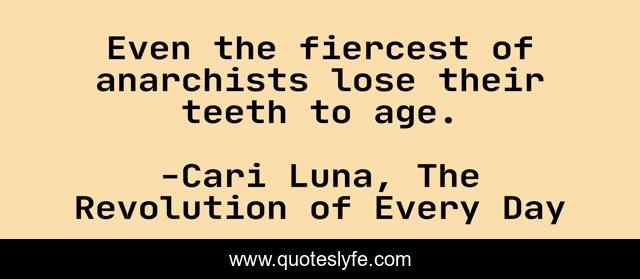 This page presents the quote "Even the fiercest of anarchists lose their teeth to age.". Author of this quote is Cari Luna, The Revolution of Every Day. .