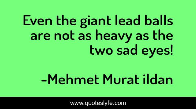 This page presents the quote "Even the giant lead balls are not as heavy as the two sad eyes!". Author of this quote is Mehmet Murat ildan. This quote is about eyes, lead, murat-ildan, giant, sad, sadness,.
