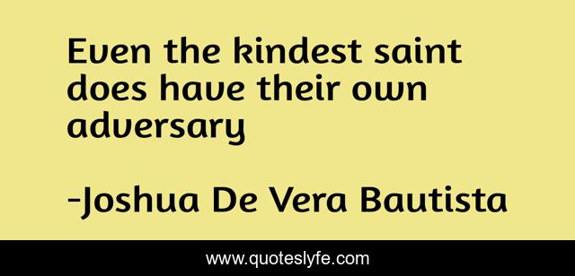 This page presents the quote "Even the kindest saint does have their own adversary". Author of this quote is Joshua De Vera Bautista. This quote is about kindness, adversary, saint,.