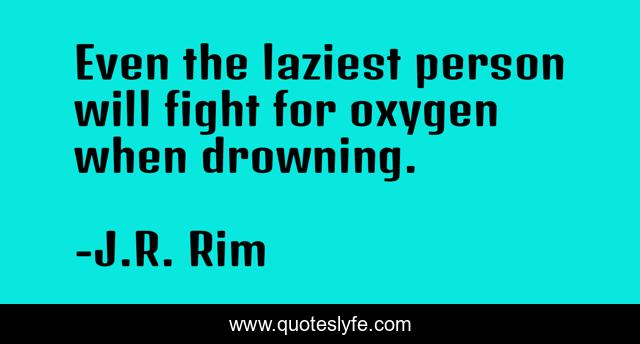 This page presents the quote "Even the laziest person will fight for oxygen when drowning.". Author of this quote is J.R. Rim. This quote is about laziest, lazy, oxygen, people, life, drowning, fight, behaviour, live,.