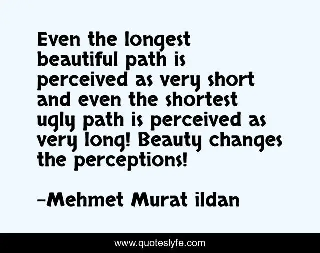 This page presents the quote "Even the longest beautiful path is perceived as very short and even the shortest ugly path is perceived as very long! Beauty changes the perceptions!". Author of this quote is Mehmet Murat ildan. .