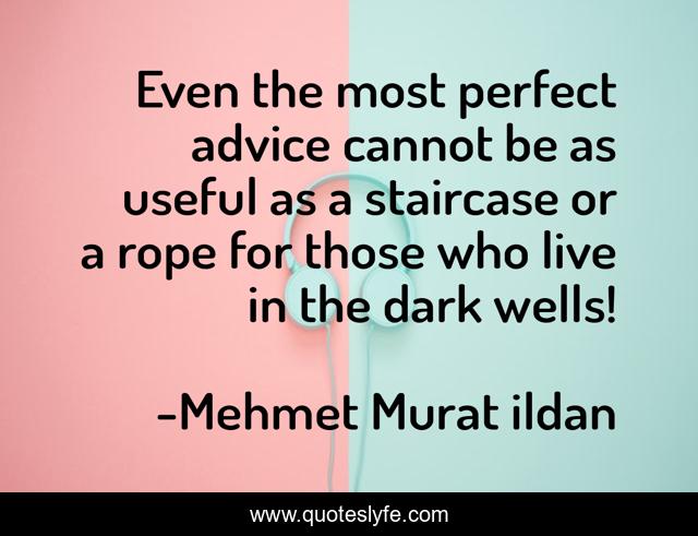 This page presents the quote "Even the most perfect advice cannot be as useful as a staircase or a rope for those who live in the dark wells!". Author of this quote is Mehmet Murat ildan. .