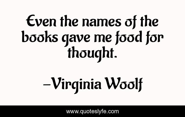 This page presents the quote "Even the names of the books gave me food for thought.". Author of this quote is Virginia Woolf. This quote is about thought, books, reading,.