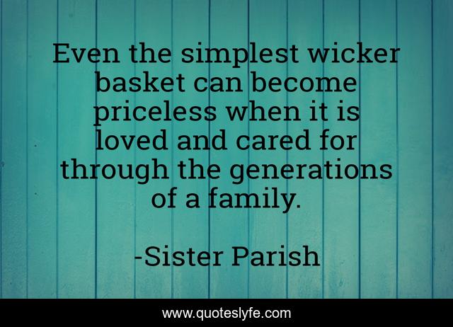 This page presents the quote "Even the simplest wicker basket can become priceless when it is loved and cared for through the generations of a family.". Author of this quote is Sister Parish. This quote is about loved, through, become,.