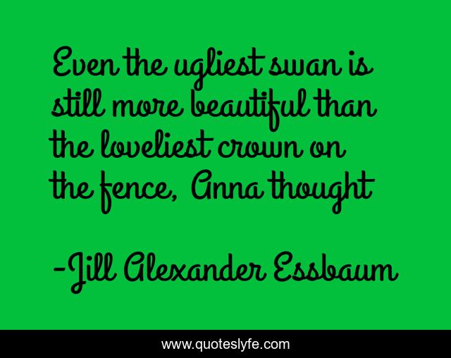 This page presents the quote "Even the ugliest swan is still more beautiful than the loveliest crown on the fence, Anna thought". Author of this quote is Jill Alexander Essbaum. .