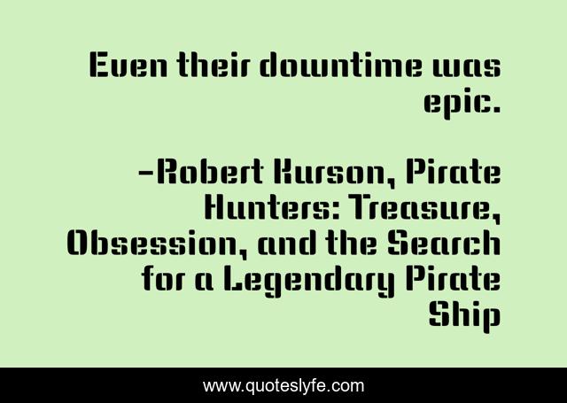 This page presents the quote "Even their downtime was epic.". Author of this quote is Robert Kurson, Pirate Hunters: Treasure, Obsession, and the Search for a Legendary Pirate Ship. This quote is about goal-setting, boldness, adventure, leisure,.