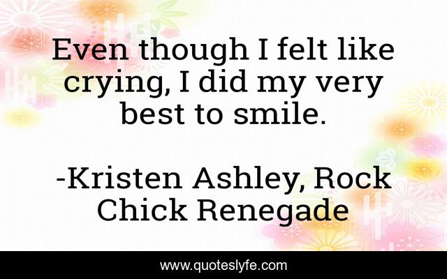 This page presents the quote "Even though I felt like crying, I did my very best to smile.". Author of this quote is Kristen Ashley, Rock Chick Renegade. This quote is about smile, happiness,.
