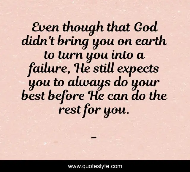 This page presents the quote "Even though that God didn't bring you on earth to turn you into a failure, He still expects you to always do your best before He can do the rest for you.". Author of this quote is . .