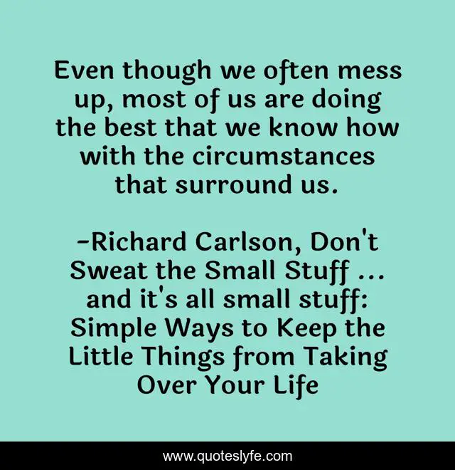 "Richard Carlson, Don't Sweat the Small Stuff ... and it's all small stuff: Simple Ways to Keep the Little Things from Taking Over Your Life Quotes." Quoteslyfe.com, 2025. Sat. 06 Dec. 2025. <https://www.quoteslyfe.com/quote/Even-though-we-often-mess-up-most-201470>.