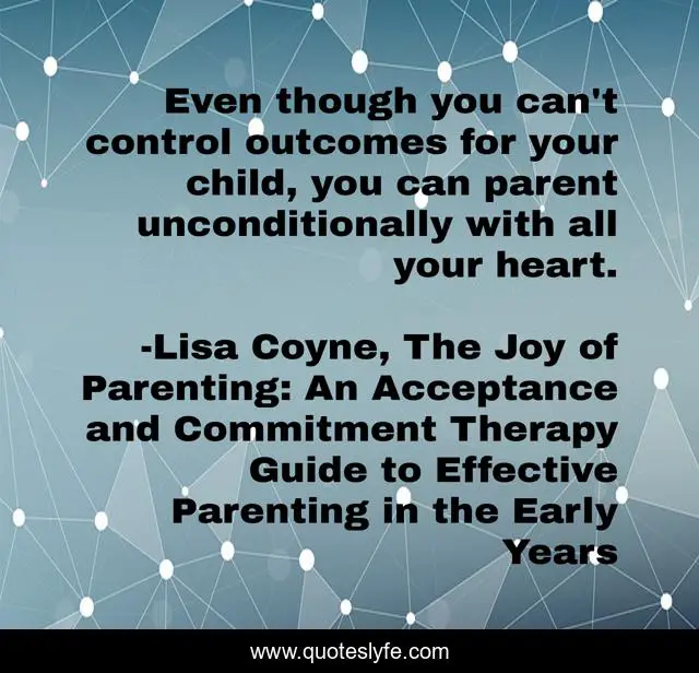 "Lisa Coyne, The Joy of Parenting: An Acceptance and Commitment Therapy Guide to Effective Parenting in the Early Years Quotes." Quoteslyfe.com, 2025. Sat. 06 Dec. 2025. <https://www.quoteslyfe.com/quote/Even-though-you-can-t-control-outcomes-166884>.