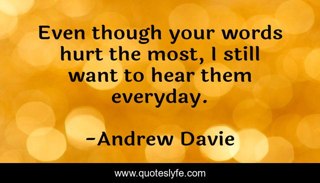This page presents the quote "Even though your words hurt the most, I still want to hear them everyday.". Author of this quote is Andrew Davie. This quote is about love, affection, hurt,.