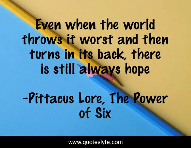 This page presents the quote "Even when the world throws it worst and then turns in its back, there is still always hope". Author of this quote is Pittacus Lore, The Power of Six. This quote is about young-adult-fiction, science-fiction,.