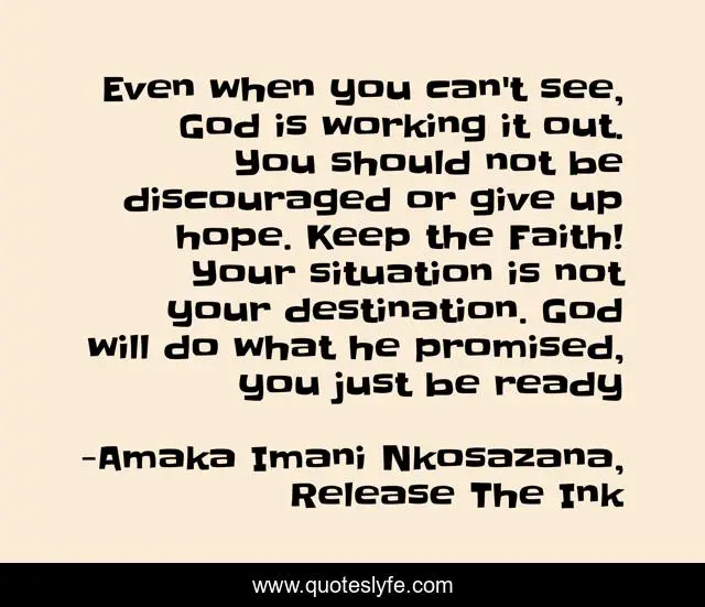 "Amaka Imani Nkosazana, Release The Ink Quotes." Quoteslyfe.com, 2025. Sat. 06 Dec. 2025. <https://www.quoteslyfe.com/quote/Even-when-you-can-t-see-God-97468>.