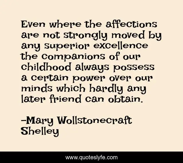 This page presents the quote "Even where the affections are not strongly moved by any superior excellence the companions of our childhood always possess a certain power over our minds which hardly any later friend can obtain.". Author of this quote is Mary Wollstonecraft Shelley. .
