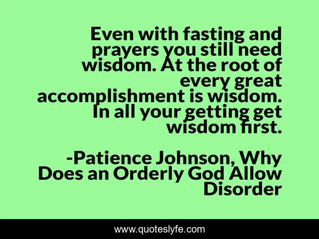 "Patience Johnson, Why Does an Orderly God Allow Disorder Quotes." Quoteslyfe.com, 2025. Fri. 05 Dec. 2025. <https://www.quoteslyfe.com/quote/Even-with-fasting-and-prayers-you-still-47883>.