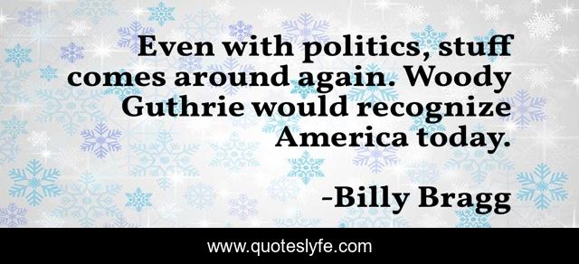 This page presents the quote "Even with politics, stuff comes around again. Woody Guthrie would recognize America today.". Author of this quote is Billy Bragg. This quote is about recognize, america, today,.