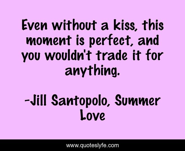 This page presents the quote "Even without a kiss, this moment is perfect, and you wouldn't trade it for anything.". Author of this quote is Jill Santopolo, Summer Love. This quote is about crush, love, teenage-love, experience, romance, kiss, affection,.