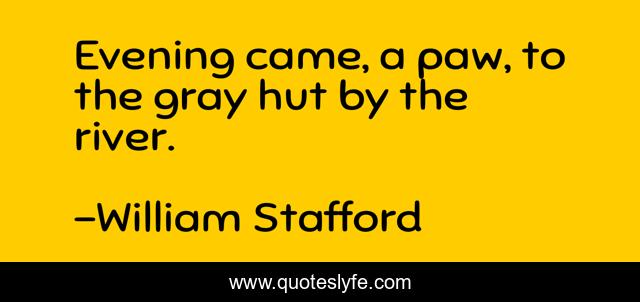 This page presents the quote "Evening came, a paw, to the gray hut by the river.". Author of this quote is William Stafford. This quote is about poets, poetry,.