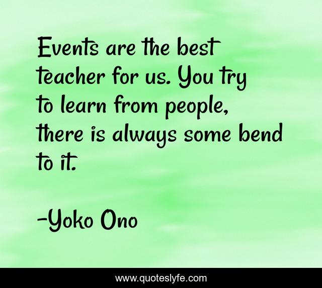 This page presents the quote "Events are the best teacher for us. You try to learn from people, there is always some bend to it.". Author of this quote is Yoko Ono. This quote is about best, people,.