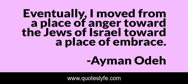 This page presents the quote "Eventually, I moved from a place of anger toward the Jews of Israel toward a place of embrace.". Author of this quote is Ayman Odeh. This quote is about place, toward, embrace,.