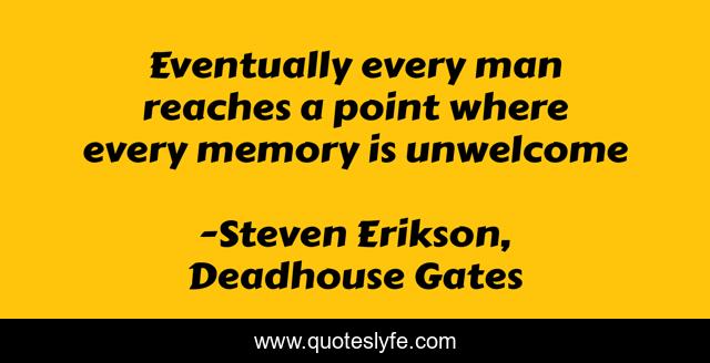 This page presents the quote "Eventually every man reaches a point where every memory is unwelcome". Author of this quote is Steven Erikson, Deadhouse Gates. .