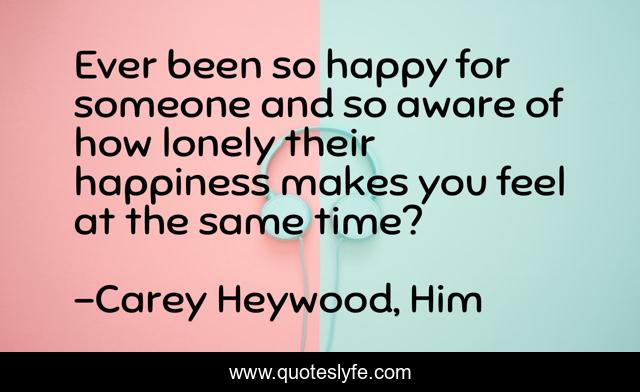 This page presents the quote "Ever been so happy for someone and so aware of how lonely their happiness makes you feel at the same time?". Author of this quote is Carey Heywood, Him. This quote is about life, lonely, love, affection, sad,.